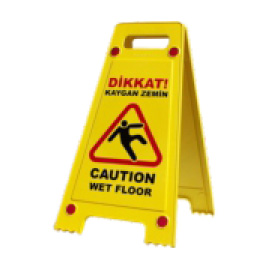 Islak ve kaymaya müsait ortamlarda çalışanları ve diğer kişileri uyarma amacı ile kullanılır. Temizlik anında ve sonrasında kullanılmalıdır. Sarı renkte olması ise işaretlerle ilgili teknik standart ve yönetmeliklerde zorunlu kılınmıştır. Ayaklı, açılır kapanır portatifdir. Pvc den üretilmiştir.